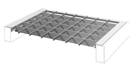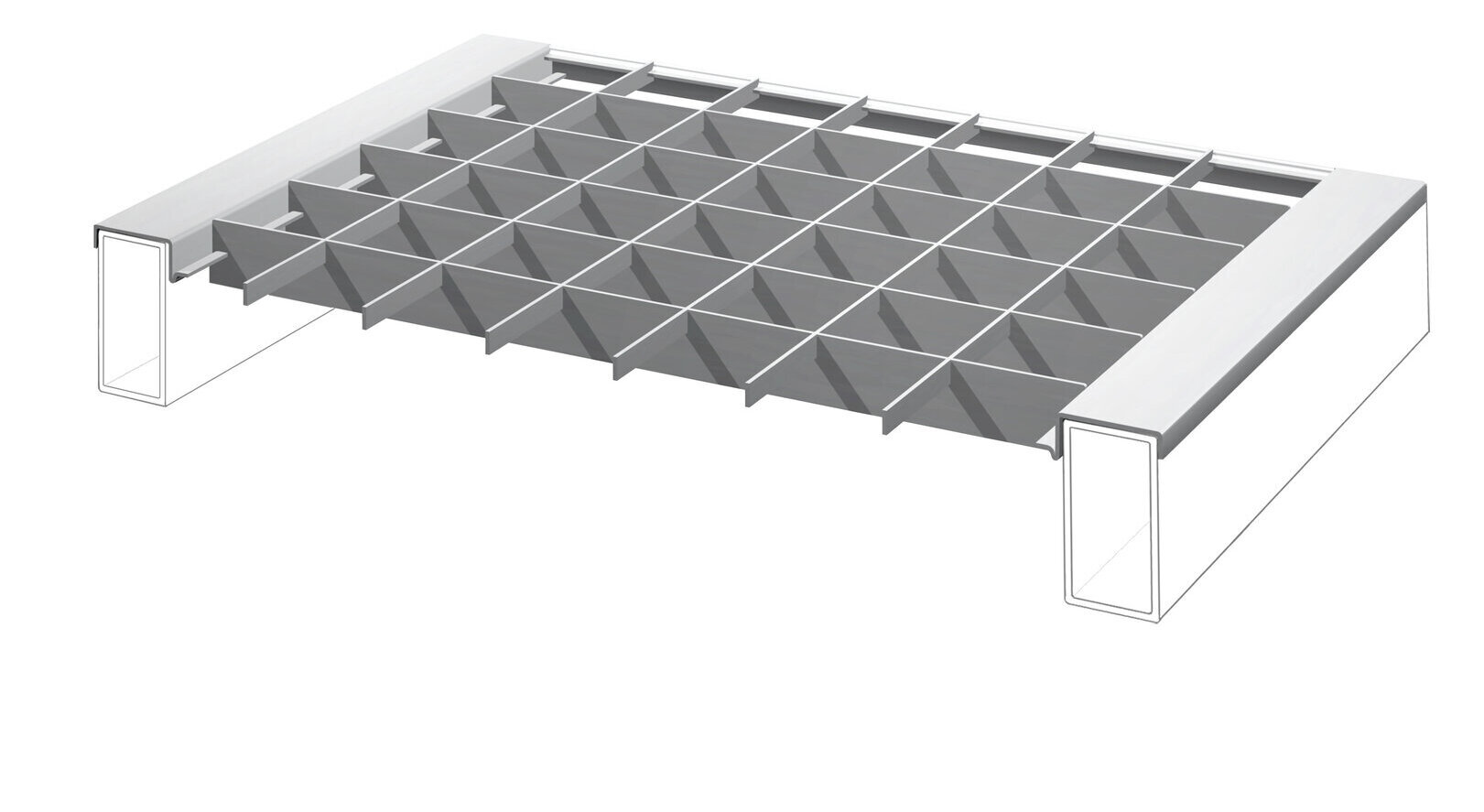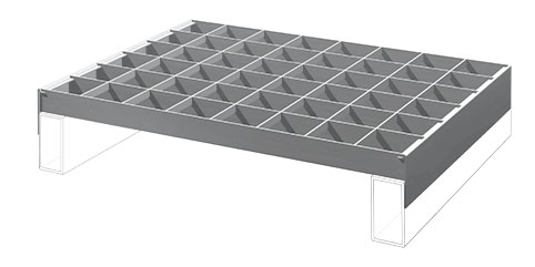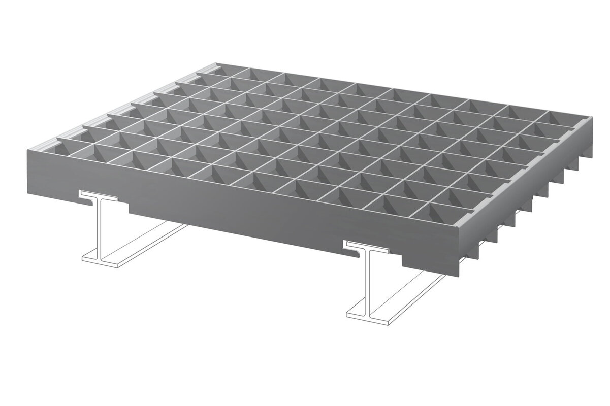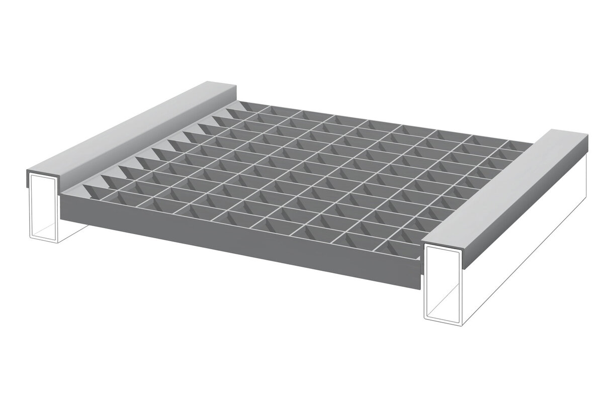 Both very high uniformly distributed loads and point loads are optimally supported by our onlaid gratings. They are ideal for load carriers of all kinds, such as pallets, mesh pallets or special racks. Also ideal for use in double racks.